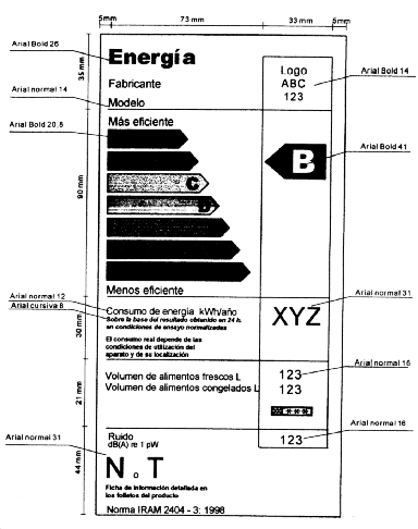 Bs. As., 14/5/99 VISTO el Expediente Nº 064-004059/99 del Registro del MINISTERIO DE ECONOMIA Y OBRAS Y SERVICIOS PUBLICOS, y CONSIDERANDO: Que es función del Estado Nacional propender a la utilización eficiente de la energía y de los recursos naturales. Que la utilización racional de la energía es uno de los medios principales para cumplir este objetivo y reducir la contaminación del medio ambiente. Que suministrando una información pertinente, comparable y fidedigna sobre la eficiencia energética de los aparatos eléctricos nacionales o importados de uso doméstico, se puede orientar la elección de los consumidores a favor de los artefactos más eficientes, lo cual motivará a los proveedores de éstos, a adoptar medidas para mejorar la eficiencia. Que, a falta de esta información, las fuerzas del mercado no lograrán fomentar por sí solas la utilización racional de la energía en el caso de dichos aparatos eléctricos. Que la información desempeña un papel fundamental en el funcionamiento de las fuerzas del mercado y que a este respecto es preciso introducir una etiqueta uniforme para todos los aparatos eléctricos nacionales o importados de un mismo tipo, en la que se presente una información normalizada en relación con su eficiencia energética, y que también esta información debe proporcionarse en una ficha técnica que permita a los potenciales compradores tomar conocimiento de estas características aun cuando no vean expuesto el aparato y, por consiguiente, no tengan posibilidad de ver la etiqueta. Que los aparatos de uso doméstico consumen una amplia gama de formas de energía, entre las que la electricidad es una muy importante. Que sólo deben contemplarse los tipos de aparatos eléctricos cuyo consumo total de energía sea significativo y que ofrezcan posibilidades suficientes de mejora del rendimiento energético. Que además existen otras características asociadas a la eficiencia energética de los aparatos eléctricos de uso doméstico y similares, como por ejemplo el ruido emitido por dichos aparatos cuando resulten relevantes desde el punto de vista de su conocimiento por parte de los consumidores, también deben incluirse en la etiqueta de eficiencia energética. Que la Ley Nº 22.802 establece, en su artículo 1º inciso c), la obligatoriedad de incluir una indicación de su calidad en el rotulado de todo producto que se comercializa en el país. Que la eficiencia energética, la emisión de ruido, el consumo y demás características asociadas constituyen parámetros que hacen a la calidad de la prestación que brindan los diferentes equipos. Que el artículo 4º de la Ley Nº 24.240 obliga a quienes ofrecen productos y servicios a suministrar a consumidores y usuarios información veraz, detallada, eficaz y suficiente acerca de sus características esenciales. Que el artículo 9º de la Ley Nº 22.802 prohíbe no sólo toda publicidad o propaganda que, mediante inexactitudes u ocultamientos, induzca a error, engaño o confusión respecto de las características o propiedades de los bienes promocionados, sino también la presentación de productos en tales condiciones. Que la eficiencia energética, la emisión de ruido y las demás características asociadas de cada uno de los tipos de aparatos eléctricos debe determinarse siguiendo normas técnicas reconocidas y que debe asegurarse la correcta y leal aplicación de estas normas para suministrar información veraz a los consumidores. Que es práctica internacional reconocida reglamentar estos aspectos haciendo referencia a normas técnicas elaboradas por los organismos nacionales de normalización como el Instituto Argentino de Normalización (IRAM), que basa sus normas en las emitidas por los organismos internacionales de normalización, como la Comisión Electrotécnica Internacional (IEC) o la Organización Internacional de Normalización (ISO), ya que esta metodología permite la adaptación y actualización al progreso de la técnica. Que a los efectos de garantizar la certeza permanente de las informaciones suministradas en las etiquetas de eficiencia energética y ruido, los aparatos eléctricos que se comercialicen en el país deben ser certificados en este aspecto por entidades certificadoras con la participación de laboratorios, todos de reconocida competencia técnica que cuenten con el reconocimiento de esta Secretaría en los términos de la Resolución de la SECRETARIA DE INDUSTRIA, COMERCIO Y MINERIA Nº 123, del 3 de marzo de 1999. Que resulta conveniente unificar los requisitos a cumplir por los aparatos de refrigeración de uso doméstico, integrando a las indicaciones previstas por la norma IRAM respectiva, lo prescripto por otras disposiciones destinadas a regular la información a suministrar a los consumidores. Que el cumplimiento de estos requisitos en lo que respecta a informar a los consumidores sobre las características de la eficiencia energética, la emisión de ruido y otras propiedades de los aparatos eléctricos de uso doméstico que se comercializan en el país mediante una etiqueta, no deberá eximir del cumplimiento de reglamentaciones vigentes en otros ámbitos específicos. Que la DIRECCION GENERAL DE ASUNTOS JURIDICOS del MINISTERIO DE ECONOMIA Y OBRAS Y SERVICIOS PUBLICOS ha tomado la intervención que le compete. Que la presente se dicta en uso de las facultades otorgadas por los artículos 11 y 12 inciso c) de la Ley Nº 22.802, los artículos 41 y 43 inciso a) de la Ley Nº 24.240 y el Decreto Nº 1183 del 12 de noviembre de 1997. Por ello, EL SECRETARIO DE INDUSTRIA, COMERCIO Y MINERIA RESUELVE: