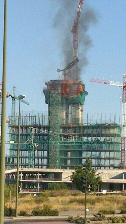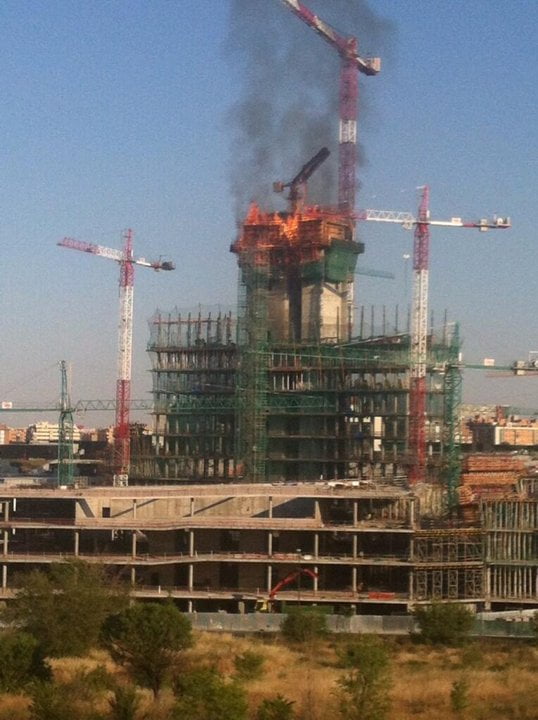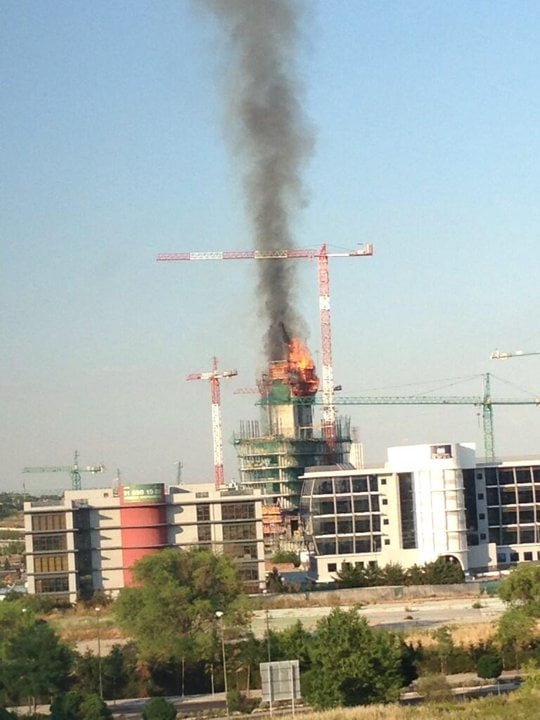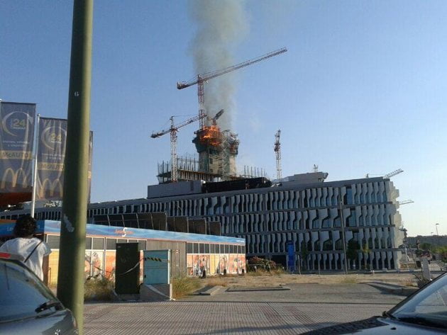 A última hora de la tarde del sábado, y por motivos que aún se desconocen, se ha originado un aparatoso incendio en las obras del que va a ser uno de los edificos que formen parte de la sede del banco BBVA.