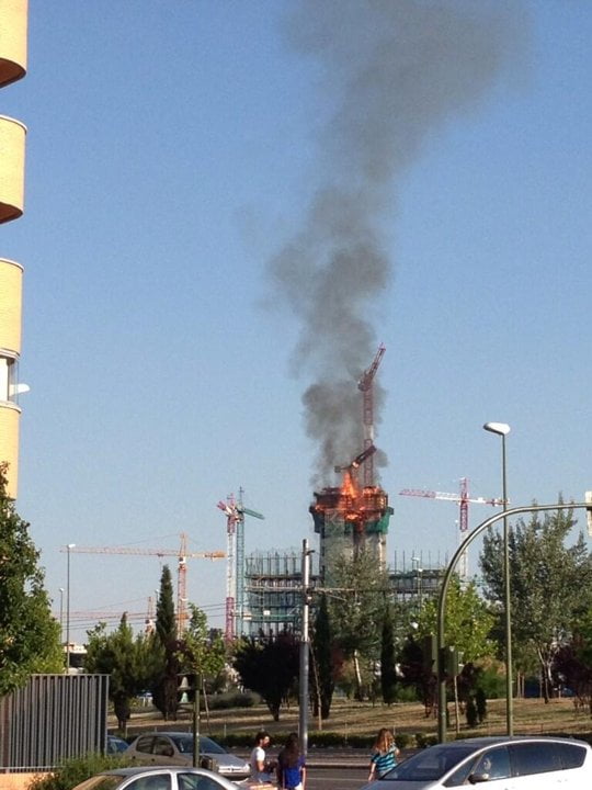 A última hora de la tarde del sábado, y por motivos que aún se desconocen, se ha originado un aparatoso incendio en las obras del que va a ser uno de los edificos que formen parte de la sede del banco BBVA.