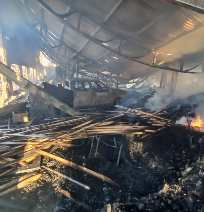 El predio, de unos 600 metros cuadrados, consta de una empresa maderera en el medio y que ocupa casi todo el tinglado erigido a la vera de la autovía de Ruta 5. A los lados también se encuentran una colchonería y una tienda de ropas deportivas. Todo el complejo quedó completamente destruido.