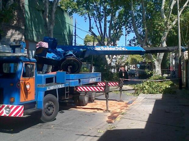 De acuerdo a las primeras informaciones, la grúa era operada por un concesionario al servicio de Alumbrado Público municipal. Se encontraba realizando tareas de corte de ramas para permitir el tendido de alumbrado público en Lamadrid y Buenos Aires, cuando el brazo de la máquina —de unos 20 metros de largo— cayó sobre dos casas.