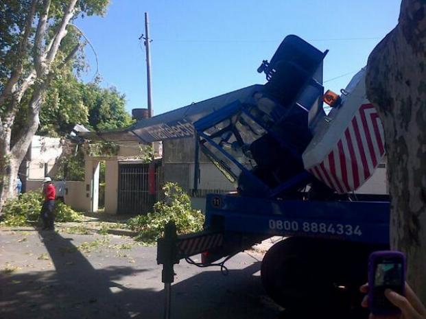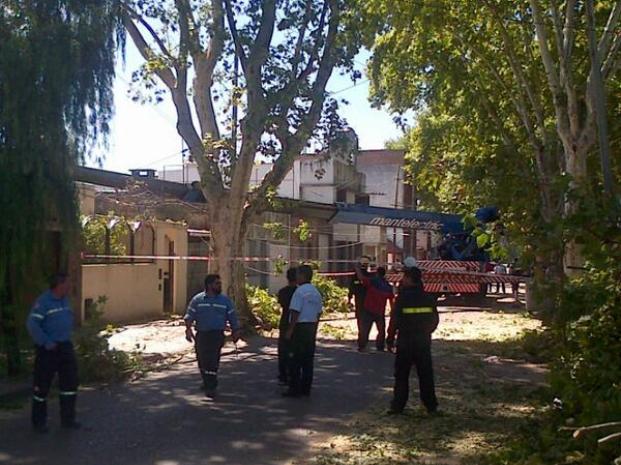 De acuerdo a las primeras informaciones, la grúa era operada por un concesionario al servicio de Alumbrado Público municipal. Se encontraba realizando tareas de corte de ramas para permitir el tendido de alumbrado público en Lamadrid y Buenos Aires, cuando el brazo de la máquina —de unos 20 metros de largo— cayó sobre dos casas.