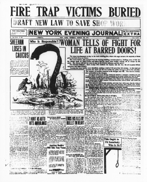 El sabado 25 de marzo de 1911 se produjo uno de los peores incendios registrados en la historia de la ciudad de Nueva York, 146 trabajadoras, la mayoría de ellas jóvenes inmigrantes murieron en el incendio.