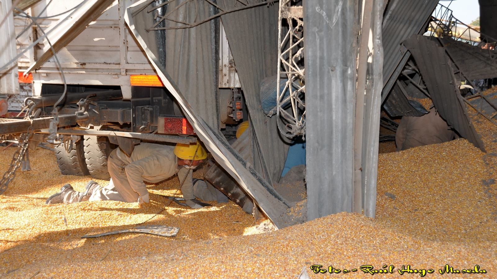 Fue en la localidad de Paraíso a 10 kms. de Ramallo donde al explotar un silo con 300 toneladas de maíz sepulto a un obrero de 36 años que murió.