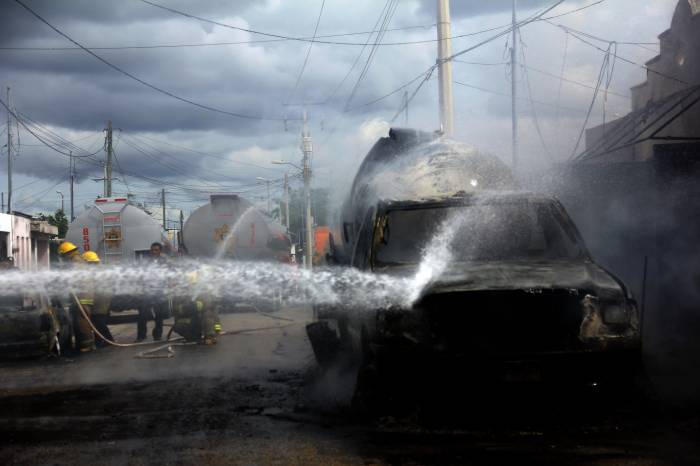 Empleados de la gasera olvidan cerrar la válvula, lo que causa el flamazo y posterior estallido del vehículo.