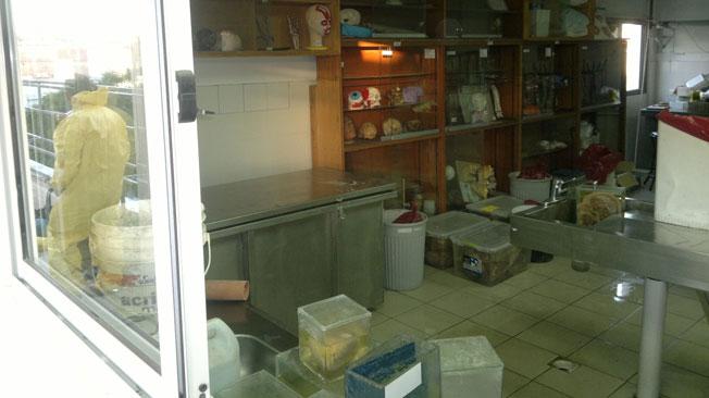 Los piletones están en el laboratorio de la cátedra de Anatomía que funciona en el tercer piso del edificio. Según explicó a La Voz el científico Hugo Luján, cuyo laboratorio también funciona en ese piso, el formol «no es peligroso». «El tema es que es muy feo el olor e irrita los ojos”, señaló.