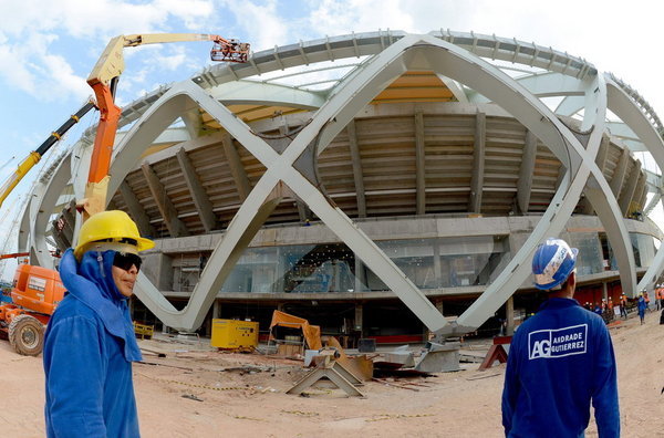 El último 27 de noviembre, dos personas murieron en el estadio Arena Corinthians, de Sao Paulo, sede de varios partidos, entre ellos el de apertura ente Brasil y Croacia el 12 de junio, cuando una grúa intentaba poner la última pieza metálica de la cobertura del escenario y la estructura cayó sobre las gradas y operarios.