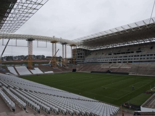 Fábio Hamilton da Cruz, de 23 anos, aparece com equipamento de segurança em imagens registradas no mesmo dia de sua morte, na obra do estádio do Timão