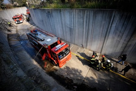 El primer tramo del ejercicio fue en un túnel donde los bomberos debían sofocar un incendio y retirar a dos víctimas del interior del subterráneo. Posteriormente, se realizó el simulacro de rescate en un vagón de subte abandonado donde había dos personas, un pasajero y el motorman.