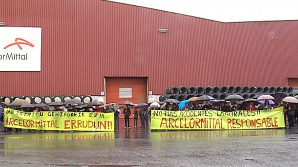 Convocados por el comité de empresa, los trabajadores de ArcelorMittal han llevado a cabo un paro de 24 horas y se han concentrado durante dos horas frente a las instalaciones de la empresa en la localidad guipuzcoana para mostrar su repulsa por el accidente en el que murió un empleado de 34 años al ser atropellado por una carretilla elevadora.