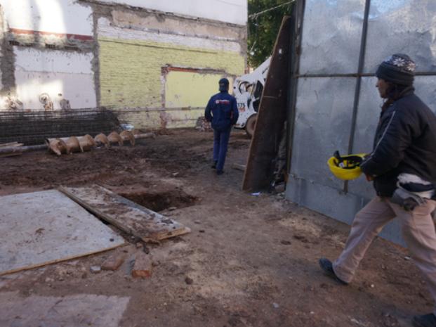 Tras las vallas verdes y blancas que rodean la esquina, una retroexcavadora que realizaba perforaciones para los futuros pilotes rompió un caño maestro de gas dentro del terreno, a menos de un metro de la línea de edificación.