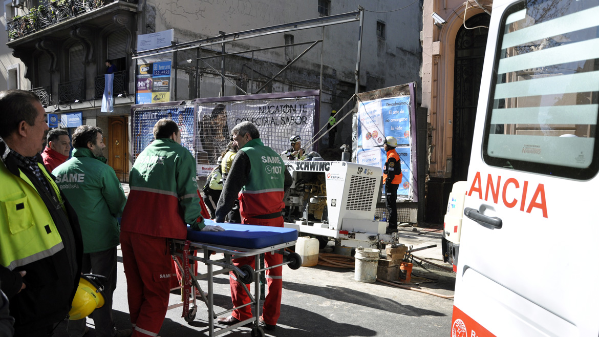 Ocurrió en Salta 960. Dos personas heridas fueron trasladadas. Una de ellas debió ser asistida porque estaba atascada entre los escombros. La Ciudad clausuró la obra