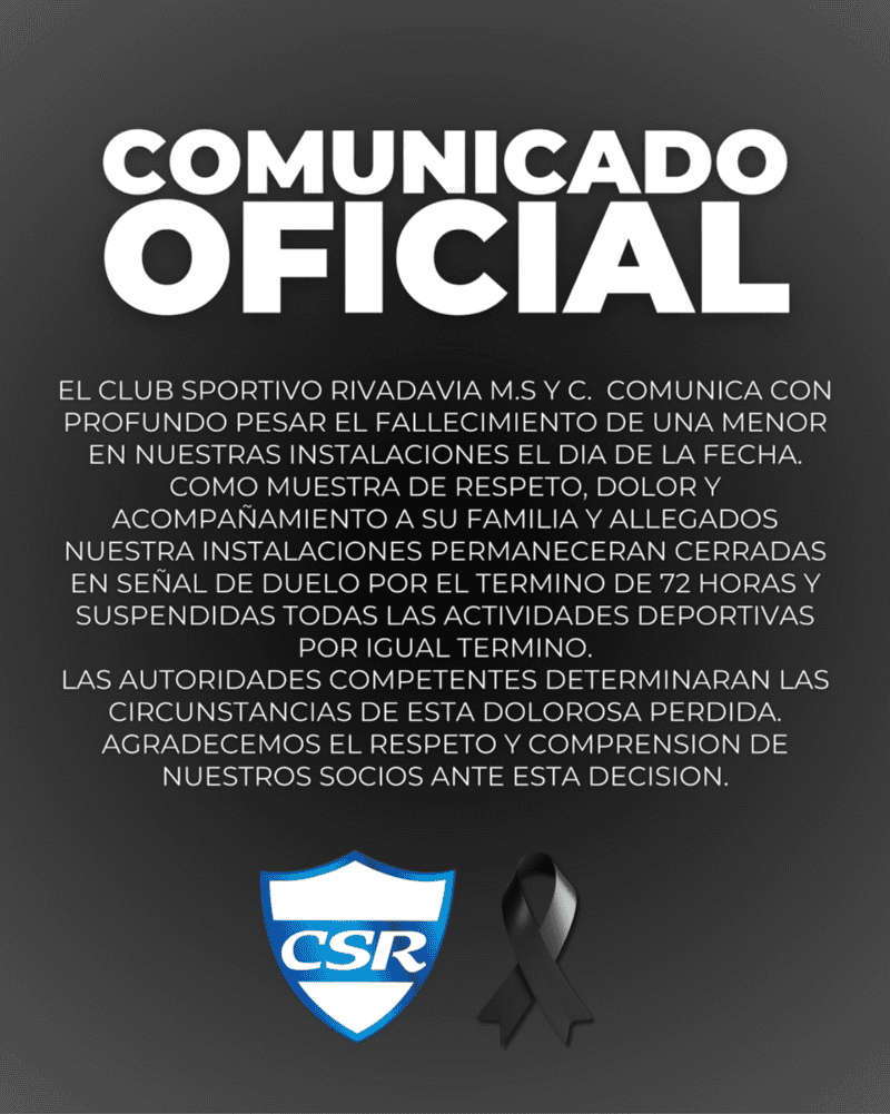 Tras conocerse la noticia, que generó gran conmoción en la comunidad, el club decretó 72 horas de duelo institucional en señal de respeto por el profundo dolor que envuelve a la ciudad.