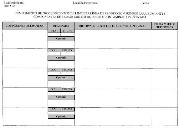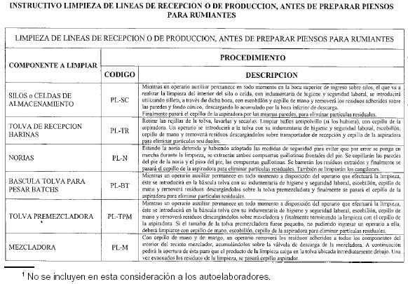 Apéndice 8 BUENAS PRACTICAS DE AUTOELABORADORES OBJETIVO: Asegurar que los alimentos que se destinan a animales, cuyos productos y subproductos, incluyendo carnes, leches, huevos u otros, con o sin industrialización, se utilicen en el consumo alimentario humano, sean inocuos para los mismos, seguros para los operadores y no introduzcan factores de riesgo en la cadena alimentaria de la población . En caso de necesidad deben usarse sólo productos terapéuticos registrados y es esencial la estricta observación de las directivas de las etiquetas y el consejo y directivas veterinarias . 1. MOLINOS 1.1. Los edificios deben limpiarse con regularidad evitando la acumulación de polvo, suciedad, alimento o materia prima derramada en pisos del edificio y circundante, en el exterior de la maquinaria, en cielo rasos, paredes, estructuras del techo, cavidades y salientes . 1.2. Debe implementarse un plan efectivo que asegure el control de plagas, por registros documentales . 1.3. La ventilación debe ser adecuada . 1.4. Deben retirarse los residuos o materiales contaminados del sitio de producción 1.5. Debe asegurarse la operatividad en caso de lluvia . AREAS DE ALMACENAJE (DEPOSITO) A) GRANEL 2.1. Los recipientes de alimento e ingredientes deben estar adecuadamente separados e identificados . El almacenaje a granel debe realizarse identificando mediante etiquetas o números, todos los recipientes y tanques, fijos o móviles . 2.2. Las materias primas muestreadas al ingreso y a la espera de los resultados del control de calidad deben ser identificadas, a los fines de evitar su uso, antes de ser aprobadas . 2.3. Se debe inspeccionar regularmente los tanques y recipientes, a los fines de observar condición estructural, contenido retenido, puntos húmedos, mohos y plagas de insectos, de verificarse deberá repararse o rediseñarse el contenedor. Si se emplea pesticida habrá que supervisar cuidadosamente la operación para evitar residuos. Se ventilarán los recipientes para evitar problemas de condensación . BOLSAS 2.4. El área de almacenaje de material embolsado debe tener el tamaño suficiente que permita la separación adecuada entre los diferentes materiales y que permita la rotación de stock, sobre la base de "primero entra, primero sale", esto se puede lograr etiquetando los lotes o con bolsas numeradas, llevando el registro de las mismas . 2.5. Se debe tener un área destinada a cuarentena, para las materias primas que requieran hacer control de calidad previo a su uso . 3. MAQUINARIA DE MOLIENDA 3.1. Se debe usar maquinaria apta para el propósito, observando las recomendaciones del fabricante en cuanto a capacidad, método y tiempo de operación . 3.2. Efectuar regularmente el mantenimiento y control de las balanzas . 3.3. Realizar el mantenimiento de las maquinarias, realizando un programa preventivo de lubricación, registro de roturas, etc., para realizar el servicio técnico en fecha . 3.4. No deben utilizarse equipos o maquinarias que no puedan lavarse o limpiarse, a los fines de evitar la contaminación cruzada . 3.5. De acuerdo al tipo de alimento a elaborar debe tener un equipo adecuado de extracción de polvo, separadores magnéticos y/o tamices para remover material extraño no-ferroso . 4. OPERARIOS DE MAQUINARIA – EMPLEADOS 4.1. Los operarios deben conocer el uso de los aparatos de peso, sistema métrico, procedimiento de mezclado y contenidos de estas recomendaciones de buenas prácticas . 5. MATERIAS PRIMAS 5.1. Debe llevarse un registro del origen, fecha de recepción, identificación de lote y cantidad de cada materia prima recibida . 5.2. De utilizarse en la elaboración materias primas de origen animal éstas deben proceder de establecimientos habilitados por la Dirección de Fiscalización Agroalimentaria del SENASA, e ingresar a la planta con certificado sanitario que ampare a las mismas, esta documentación debe guardarse por un lapso mínimo de SIETE (7) años . 5.3. El autoelaborador debe observar los siguientes procedimientos para asegurarse que las materias primas sean de la calidad apropiada: 5.3.1. Todos los operarios deben estar familiarizados con los estándares de comercialización de granos e ingredientes. Se debe entregar a los proveedores las especificaciones de calidad para cada materia prima utilizada . 5.3.2. Las materias primas deben evaluarse en la entrega, antes de la descarga, a los fines de evitar la recarga en caso de rechazo . 5.3.3. Se debe efectuar un rápido examen visual, de olfato y físico a las materias primas, antes de la descarga, para observar si tienen contaminantes . 5.3.4. Las materias primas rechazadas y debidamente identificadas, deben devolverse de inmediato al proveedor . 5.3.5. Periódicamente (lapso dependiente de la frecuencia de compra y la posibilidad de contaminación con sustancias tóxicas) se deben realizar a las materias primas exámenes químicos para sustancias específicas. Asimismo, se efectuarán ante un nuevo proveedor . 5.3.6. De ser posible, se deben tomar muestras de todas las materias primas y retenerlas por tres meses como mínimo, identificadas con etiqueta donde conste, origen, fecha, cantidad de compra y número de lote del cual se extrajo . 6. FORMULACION 6.1. El responsable técnico de la firma debe formular y verificar la fórmula maestra, con las indicaciones de mezcla, archivando la documentación y asentándolo en el libro de actas foliado y habilitado por el Servicio . 6.2. Las fórmulas indicarán claramente los ingredientes a mezclar . 6.3. Se debe especificar la cantidad de cada materia prima y su ubicación, recipiente o bolsa en que se encuentra . 6.4. Los procedimientos para la adición de premezclas medicadas y/o proteínas de origen animal deben estar por escrito, con copia a las personas que hagan las mezclas. Debe llevarse un registro de su uso (cantidad, fecha, tipo de alimento, etc.) . 7. MEZCLADO 7.1. Los alimentos deben mezclarse en una secuencia tal que cualquier medicación o 