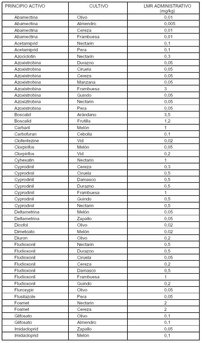 Art. 2º — Los Límites Máximos de Residuos Administrativos (LMR A), establecidos en la presente resolución, tendrán vigencia hasta el día 5 de enero de 2009.