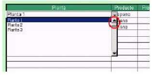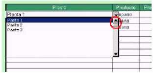 Nota: Es probable, dependiendo de la versión de Excel, que al hacer click en el menú desplegable para elegir la planta éste aparezca vacío, en ese caso lo que deberá hacer es ir al primer ítem de la lista haciendo click en la flechita "hacia arriba" como lo indica la siguiente figura: