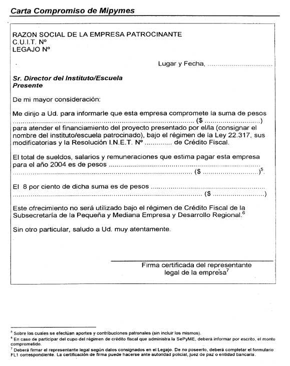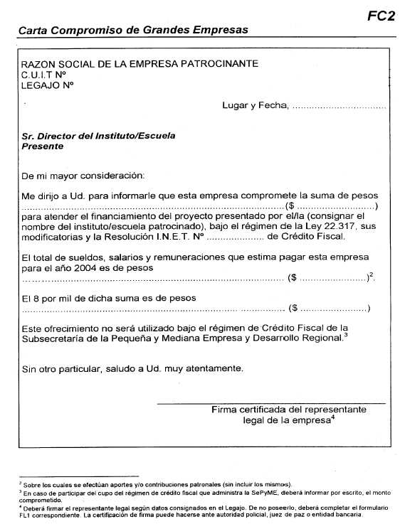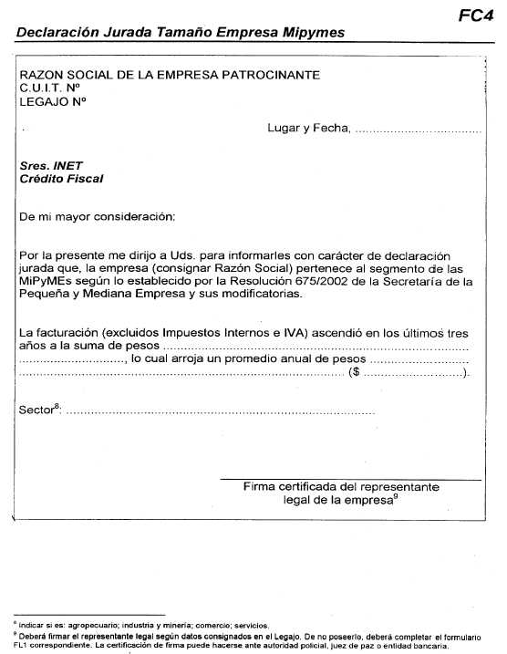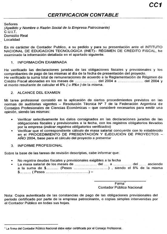 2.3. ¿Cuál es el financiamiento máximo por empresa patrocinante? Las MiPyMEs podrán financiar proyectos por el importe equivalente hasta el 8% (ocho por ciento) de la suma total de sueldos, salarios y remuneraciones pagadas mensualmente sobre las cuales se efectúen aportes y/o contribuciones patronales, correspondientes al período comprendido entre el 1° de enero de 2004 y el 31 de diciembre de 2004. A los efectos del presente Procedimiento se considerarán MiPyMEs aquellas empresas que se encuadren en lo establecido por la Resolución Nº 24/2001 de la Subsecretaría de la Pequeña y Mediana Empresa y Desarrollo Regional y sus modificatorias. Las grandes empresas podrán financiar proyectos por el importe equivalente hasta el 8‰ (ocho por mil) de la suma total de sueldos, salarios y remuneraciones pagadas mensualmente, sobre las cuales se efectúen aportes y/o contribuciones patronales, correspondientes al período comprendido entre el 1° de enero de 2004 y el 31 de diciembre de 2004. Al momento de la presentación del proyecto la masa salarial tomada como base de cálculo será la proyectada para el año calendario 2004 (según carta compromiso FC2 o FC3), mientras que el monto definitivo deberá acreditarse en oportunidad de la rendición de cuentas según el siguiente formulario de Certificación Contable: