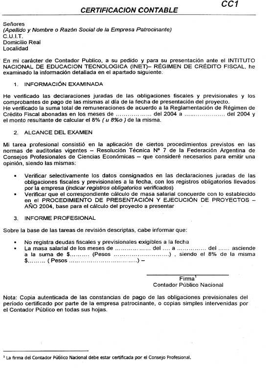 I. Régimen de Crédito Fiscal 1.1. Objetivo General del Régimen de Crédito Fiscal El Instituto Nacional de Educación Tecnológica (INET) a través del Régimen de Crédito Fiscal financia acciones de capacitación y adquisición de equipamiento para la ejecución de los proyectos que vinculen la educación con el mundo del trabajo. Se financian proyectos que tengan por objeto desarrollar acciones orientadas al fortalecimiento de la educación tecnológica de nivel medio y superior no universitario, la formación profesional y la educación continua, que involucren la participación y articulación con organizaciones del ámbito productivo y social y faciliten la inserción laboral de desocupados y la empleabilidad de trabajadores en actividad y/o subocupados. 1.2. Acceso al Régimen de Crédito Fiscal Las Instituciones Educativas deberán presentar un Proyecto patrocinado por una o más empresas, según las pautas establecidas en el presente Procedimiento del Régimen de Crédito Fiscal del INET. Aquellas instituciones educativas que no cuenten con patrocinantes al momento del cierre de la convocatoria, igualmente podrán presentar su proyecto debiendo incorporar la empresa patrocinante y la documentación formal respectiva hasta el día 30 de julio de 2004. (Nota Infoleg: por art. 2° de la Resolución 76/2004 Instituto Nacional de Educación Tecnológica B.O. 1/7/2004, se prorroga el plazo prestablecido en el presente punto, hasta el 31 de agosto de 2004 inclusive, plazo que rige para la incorporación de empresas patrocinantes y la documentación formal respectiva, en el marco del Régimen de Crédito Fiscal del ejercicio 2004, que administra este organismo). 1.3. Emisión del Certificado de Crédito Fiscal El solicitante debe presentar la rendición de gastos derivados de la ejecución del proyecto en forma total o hasta en tres rendiciones parciales dentro de los plazos establecidos, las que una vez aprobadas darán lugar a la emisión de los Certificados de Crédito Fiscal. Los Certificados se emitirán a nombre de la/s Empresa/s Patrocinante/s del proyecto, quien/es lo podrá/n endosar a terceros o entregar a la Administración Federal de Ingresos Públicos (AFIP) para la cancelación de cualquier impuesto cuya aplicación, percepción y fiscalización se encuentre a cargo de dicho Organismo Recaudador. 1.4. Asignación del cupo El cupo anual fijado por la Ley de Presupuesto Nacional cuya administración corresponde al INSTITUTO NACIONAL DE EDUCACION TECNOLOGICA del MINISTERIO DE EDUCACION, CIENCIA Y TECNOLOGIA, asciende a UN TOTAL DE PESOS CINCO MILLONES ($ 5.000.000) que se destinará al financiamiento de proyectos Educación-Trabajo. Se asignará un importe mínimo y equivalente al 2 % del total del mismo a cada Provincia y a la Ciudad Autónoma de Buenos Aires en tanto cuenten con proyectos aprobados por ese monto mínimo. El resto de la asignación se realizará conforme el resultado de la evaluación de cada proyecto y de su ubicación en el ranking nacional, el que se conformará con la totalidad de los proyectos aprobados. 1.5. Proyectos de Educación-Trabajo Los proyectos deberán contemplar el desarrollo y ejecución de acciones orientadas a: