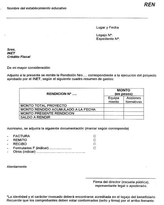 4.2. ¿Cómo debe realizarse la rendición del proyecto? El detalle de egresos se hará mediante la presentación de los formularios correspondientes, junto con la documentación requerida en los mismos. Una vez verificada la rendición de cuentas (total o parcial) y cumplimentados los requisitos del punto anterior, se emitirá el Certificado de Crédito Fiscal. 4.3. ¿Qué formularios deben presentarse para la rendición de equipamiento? Los proyectos que incluyan adquisición de bienes de capital fijo deberán remitir los formularios correspondientes, de acuerdo a como haya sido adquirido el mismo: (a)Por la empresa y cedido al establecimiento educativo. (b)Por el establecimiento educativo.