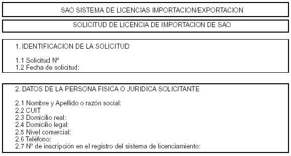 Anexo VIII: FORMULARIO DE LICENCIA DE IMPORTACION DE SAO