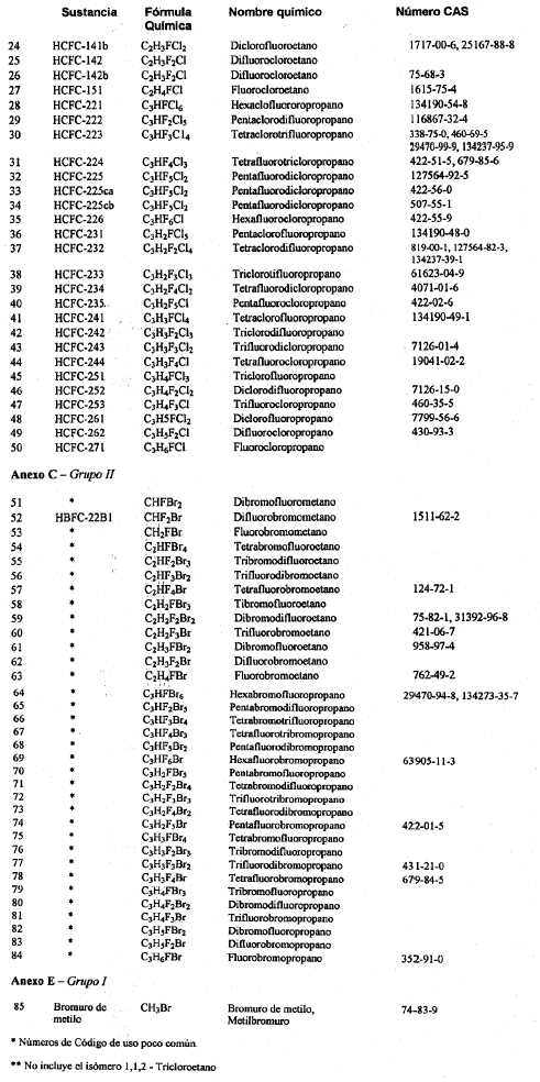 Listado de sustancias que quedan comprendidas en las disposiciones de la Ley N° 24.040 y el Protocolo de Montreal sobre control de producción, utilización, comercialización, importación y exportación de elementos que agotan la capa de ozono.