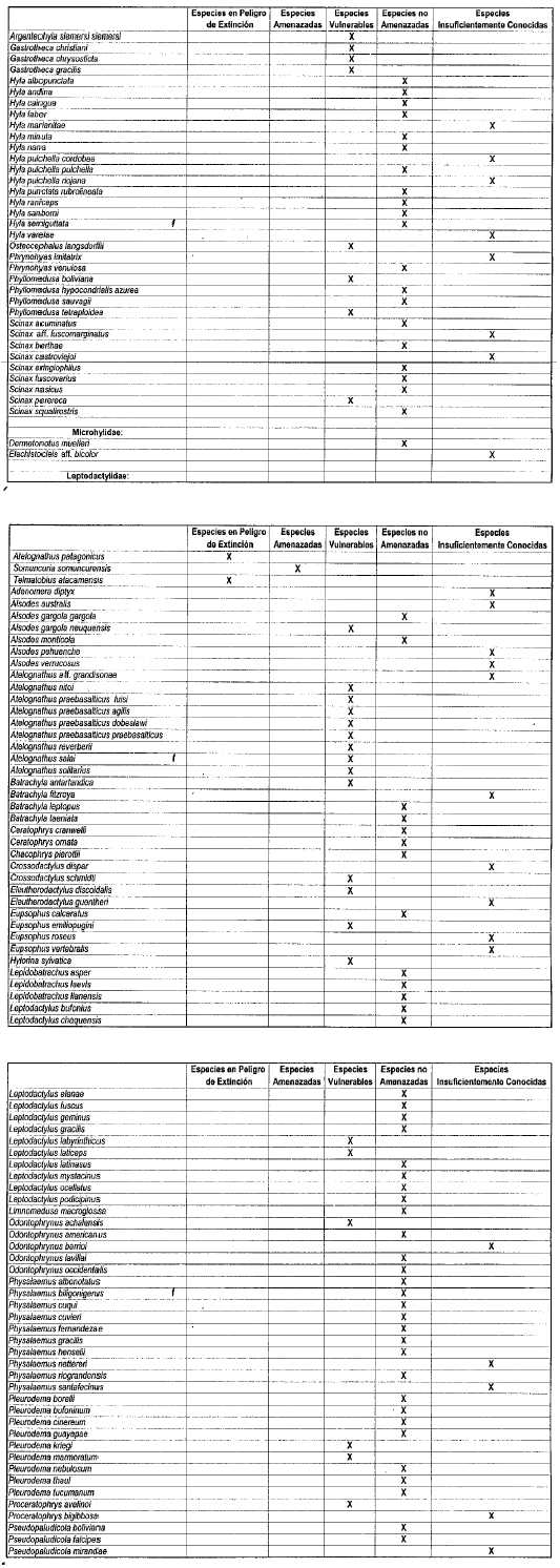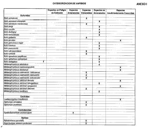 CONSERVACIÓN DE LA FAUNA Determínanse los nuevos índices de calificación de las especies de Anfibios, Reptiles y Mamíferos autóctonos de acuerdo a lo establecido en el artículo 4º del Decreto 666/97.