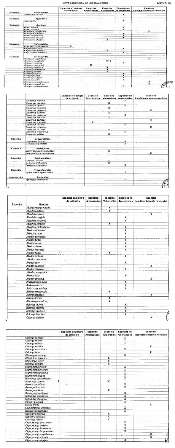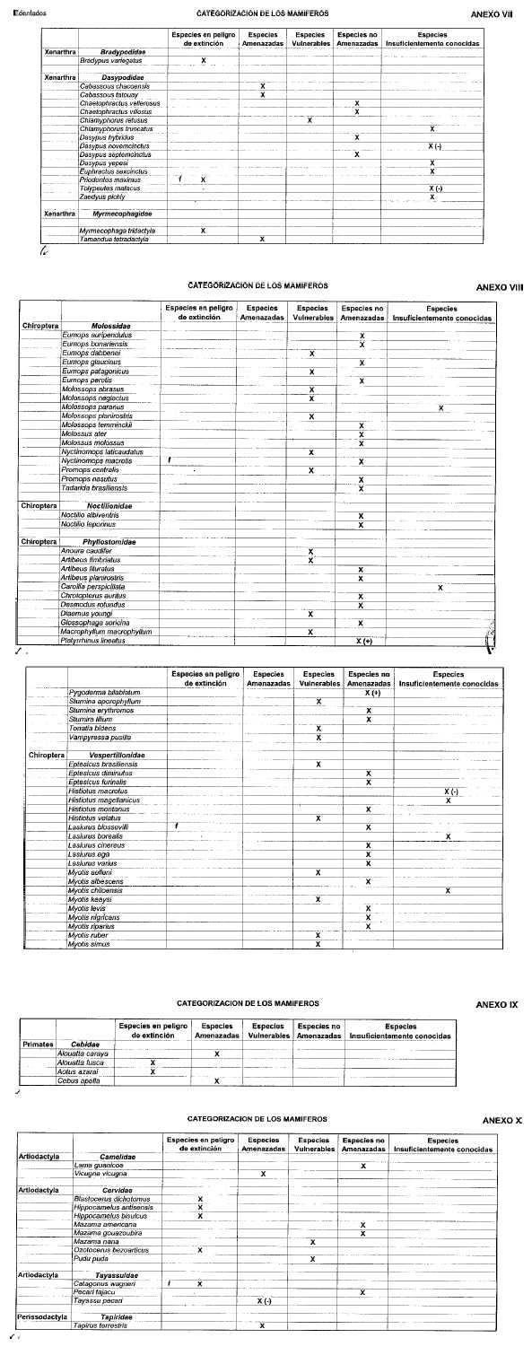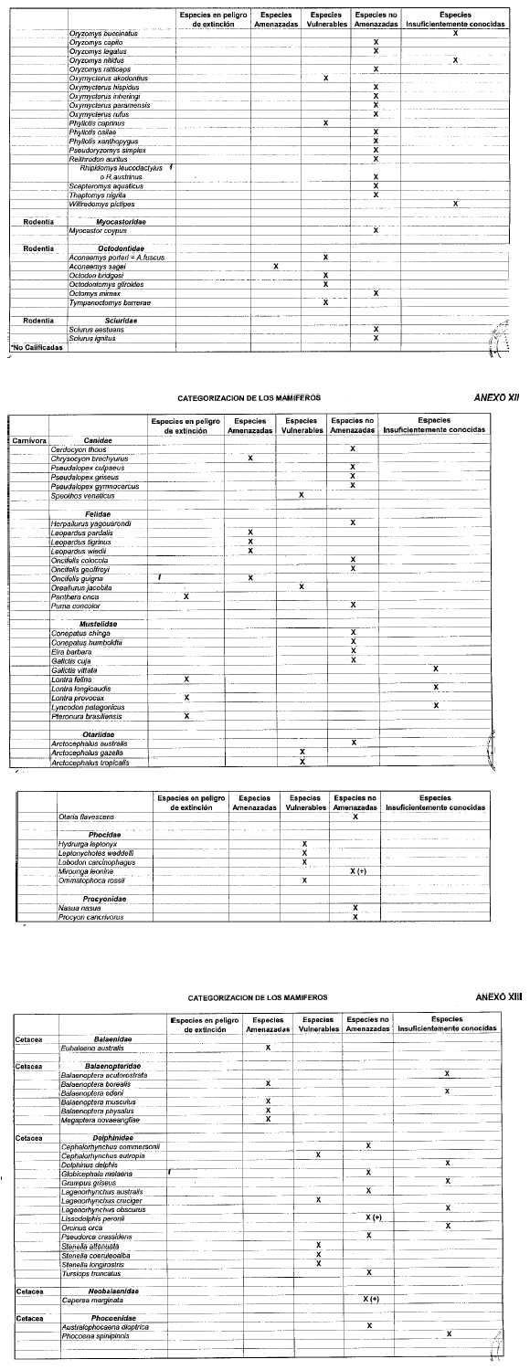 Art. 2° — Asígnase el siguiente ordenamiento para las especies de Mamíferos autóctonos de acuerdo a lo establecido en el artículo 4° del Decreto 666/97 reglamentario de la Ley 22.421 que obra como Anexos VI al XIII y que forman parte de la presente Resolución.