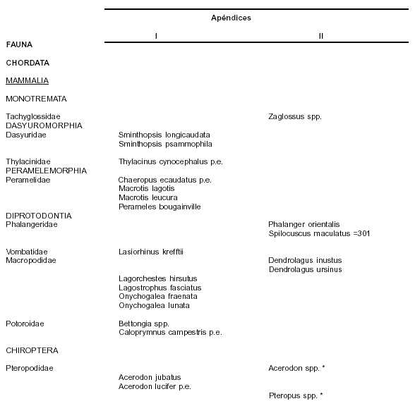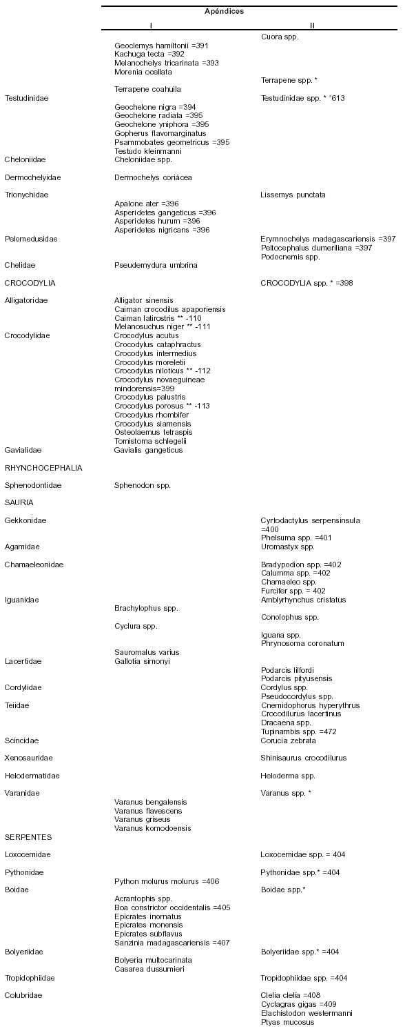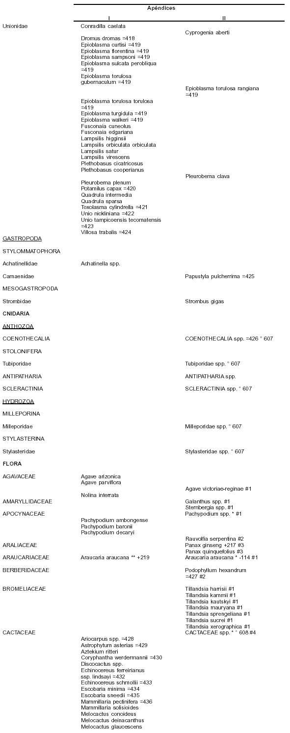 1. Las especies que figuran en estos Apéndices están indicadas:
