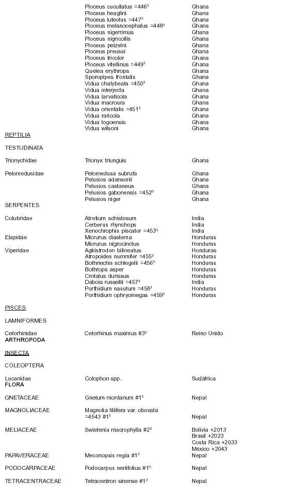 1. Las referencias a los taxa superiores de la especie se indican únicamente a título de información o de clasificación.