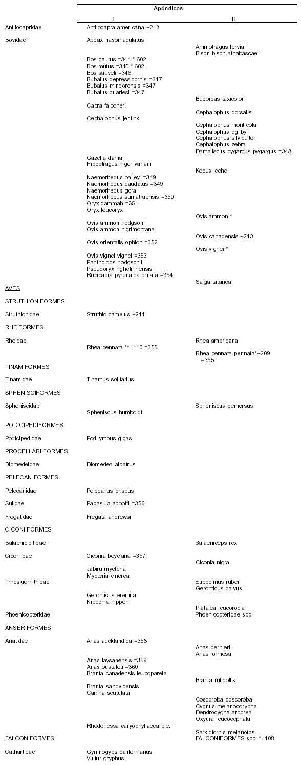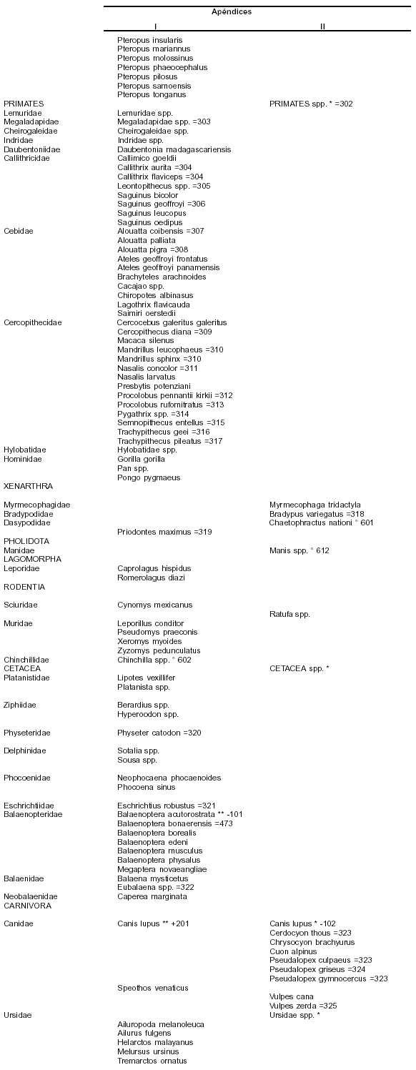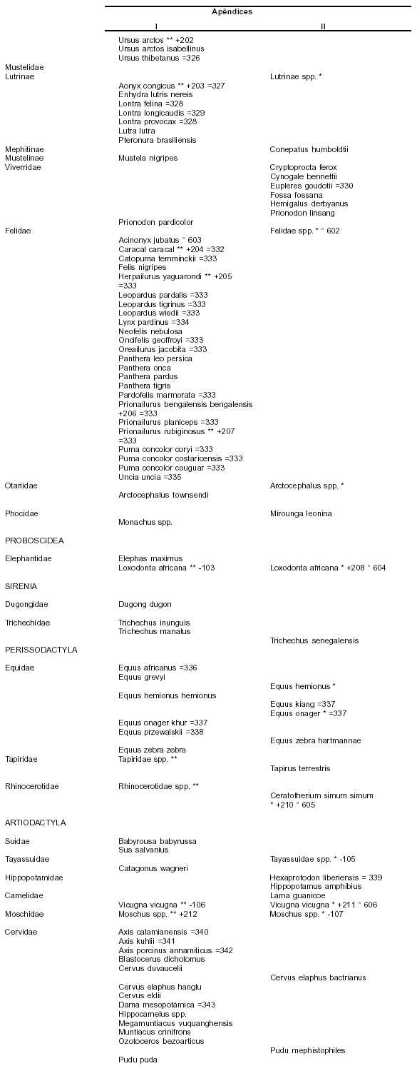 2. El signo (+) seguido de un número colocado junto al nombre de una especie significa que únicamente las poblaciones geográficamente aisladas de dicha especie están incluidas en el Apéndice III como sigue: