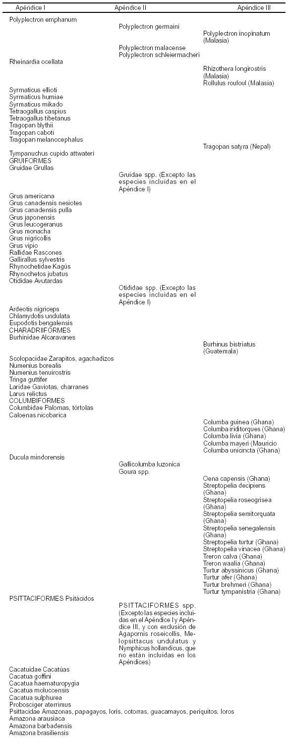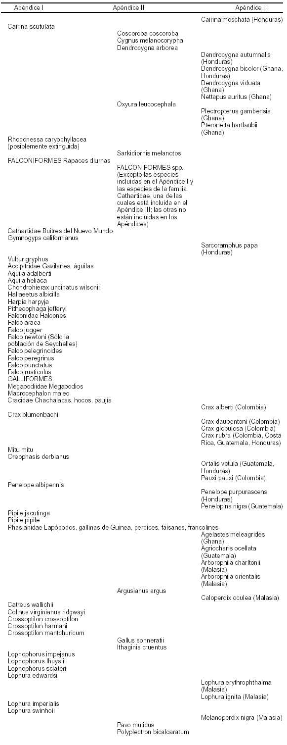 CONSERVACIÓN DE LA FAUNA Y FLORA SILVESTRE Establécense modificaciones a los Apéndices de la Convención sobre el Comercio Internacional de Especies Amenazadas de Fauna y Flora Silvestre, adoptadas en la Decimotercera Reunión de la Conferencia de las Partes realizada en Bangkok.