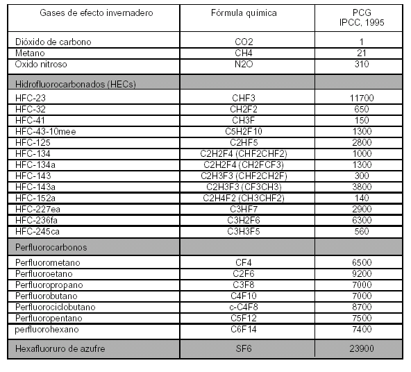 Formato de Presentación ANEXO 3 Valores de Potenciales de Calentamiento Global (PCG) basados en los efectos de los GEI para un horizonte de 100 años (IPCC, 1995)
