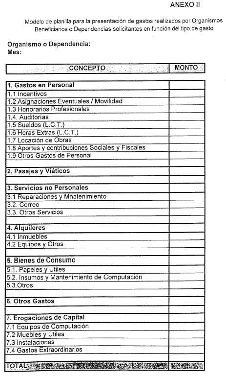 ARTICULO 7° — Los Organismos Beneficiarios deberán presentar un presupuesto de recursos y gastos previstos para el período comprendido entre el 01 de enero y el 31 de diciembre de cada año, con una antelación de TREINTA (30) días.