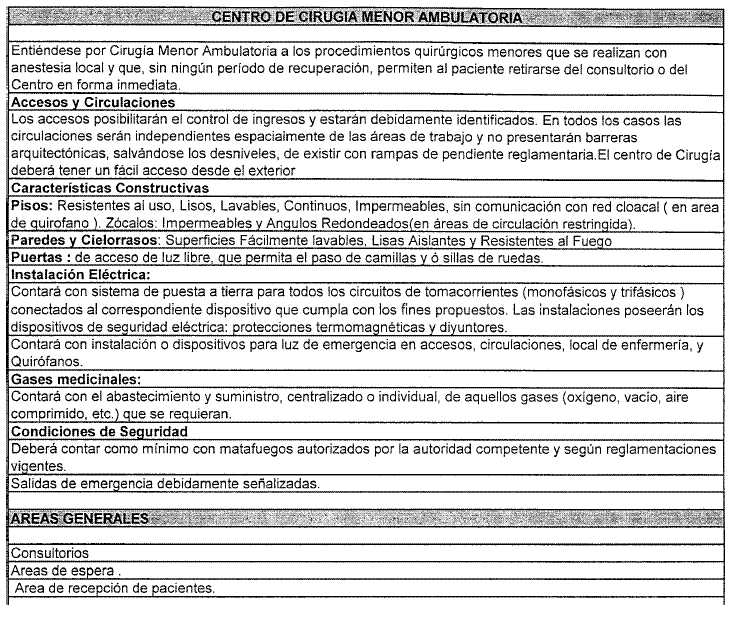 Art. 11. — Todo Consultorio o Centro Médico con quirófano habilitado que realice cirugías ambulatorias deberá poseer y acreditar mantener: