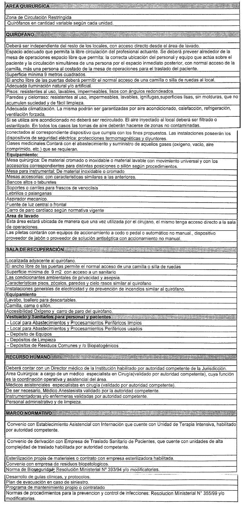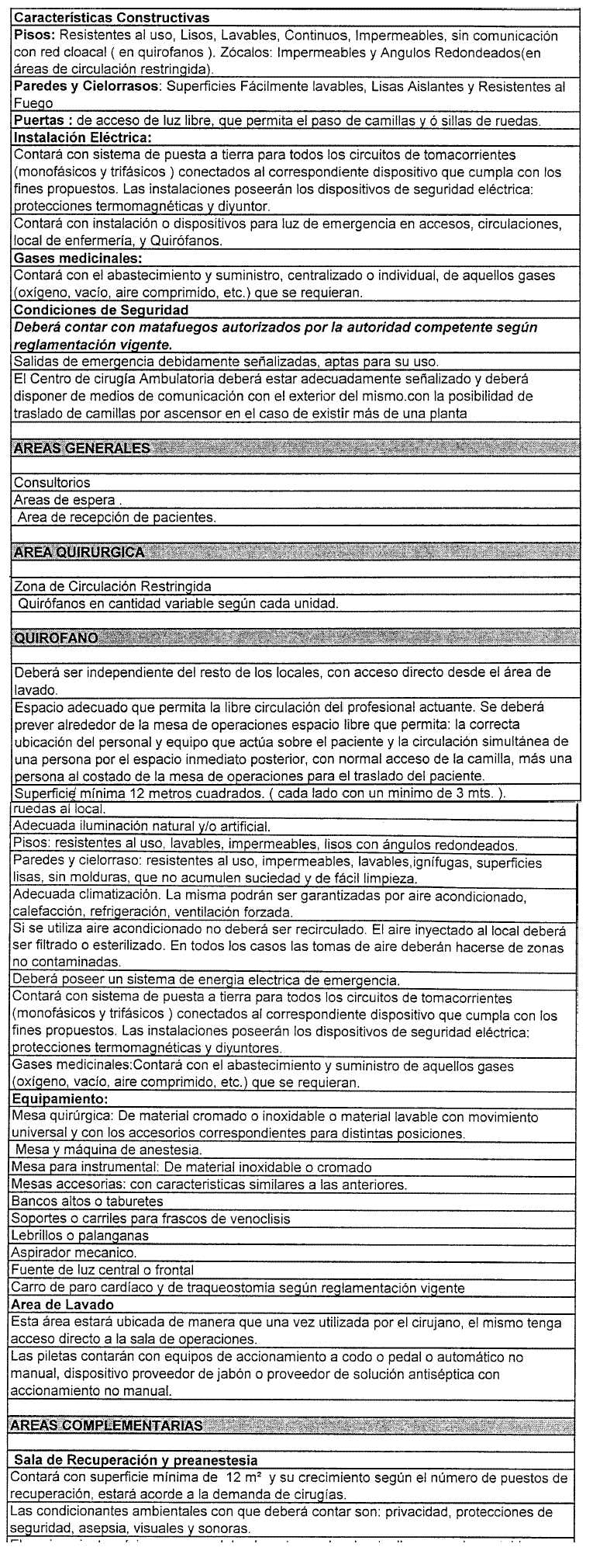 Art. 6° — Establécese que los quirófanos de los Centros Médicos que realicen Cirugía Mayor Ambulatoria deberán cumplimentar los requisitos establecidos en el ANEXO III de la presente. Entendiéndose por Cirugía Mayor Ambulatoria a la descripta en el Artículo 3°.