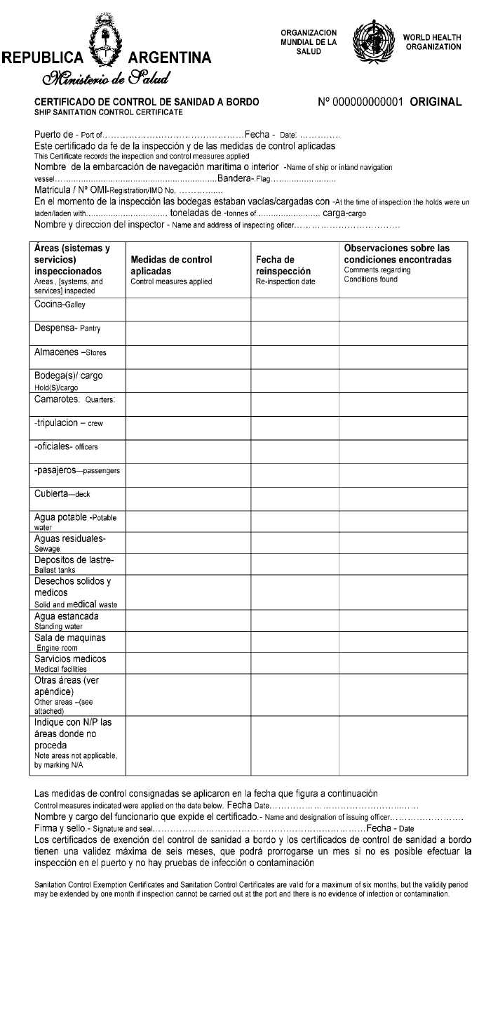 - MODELO DE CERTIFICADO DE CONTROL DE SANIDAD A BORDO.