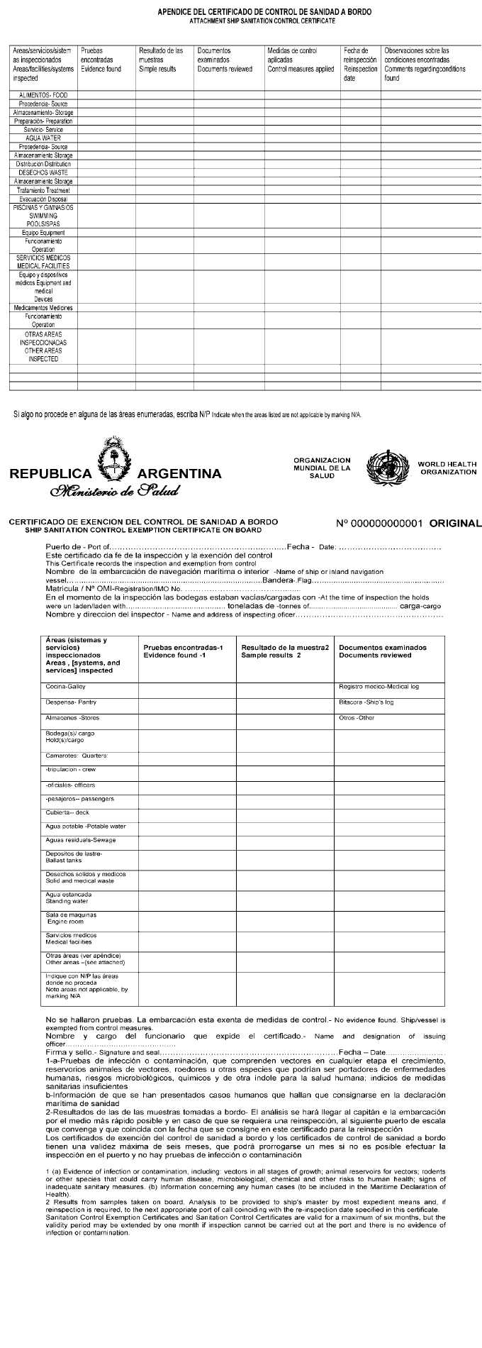 - APENDICE DEL MODELO DE CERTIFICADO EXENCION DEL CONTROL DE SANIDAD A BORDO.