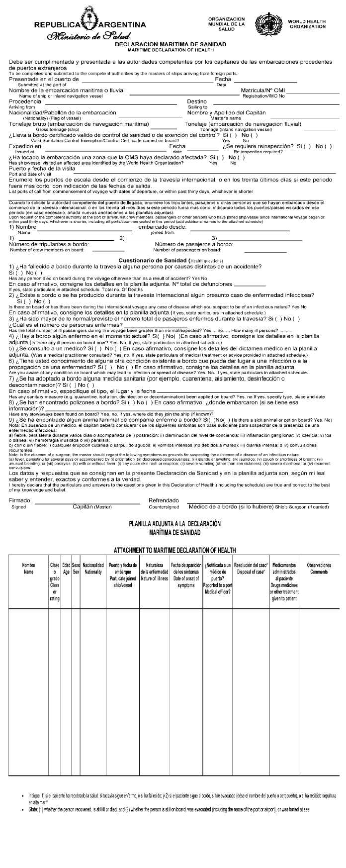 - PLANILLA ADJUNTA AL MODELO DE DECLARACION MARITIMA DE SANIDAD.