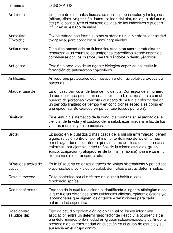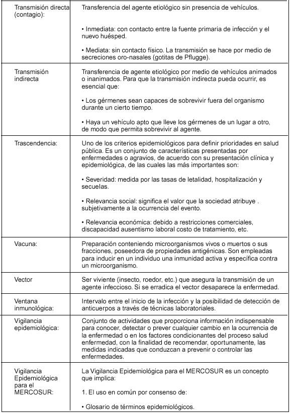 Bs. As., 20/11/2001 VISTO: el Tratado de Asunción, el Protocolo de Ouro Preto y la Resolución Grupo Mercado Común del Mercosur N° 53/99, y CONSIDERANDO: Que por la citada Resolución GMC se resolvió aprobar el documento "Glosario de Terminología de Vigilancia Epidemiológica-Mercosur". Que de los considerandos de la referida Resolución surge que es necesario contar con una terminología armonizada en el área de Vigilancia Epidemiológica con vistas a posibilitar la formación de un Sistema de Informaciones sobre la materia. Que la Resolución fue previamente discutida y armonizada con la participación de representantes de la República Argentina, y fue recomendada al Grupo Mercado Común por la Comisión de Vigilancia Epidemiológica y Control Sanitario de Puertos, Aeropuertos, Terminales y Pasos Fronterizos y la Comisión de Coordinadores Nacionales del SGT N° 11-Salud del Mercosur. Que en virtud del Artículo 38 del Protocolo de Ouro Preto signado por nuestro país, nace el compromiso de adoptar las medidas necesarias para asegurar el cumplimiento de las normas emanadas de los órganos del Mercosur y en consecuencia deben incorporarse las Resoluciones GMC/MERCOSUR a la normativa jurídica nacional. Que la Dirección de Asuntos Jurídicos ha tomado la intervención de su competencia. Por ello; EL MINISTRO DE SALUD RESUELVE: Art. 1° — Aprobar el documento "Glosario de Terminología de Vigilancia Epidemiológica-Mercosur" que figura como Anexo I, que forma parte integrante de la presente resolución, en el cual se transcribe literalmente la versión en castellano de la Resolución GMC N° 53/99 el que queda incorporado a la normativa jurídica nacional vigente. Art. 2° — Regístrese, comuníquese. Dése a la Dirección Nacional del Registro Oficial para su publicación. Cumplido, archívese PERMANENTE. — Héctor J. Lombardo. MERCOSUR/GMC/RES. N° 53/99 GLOSARIO DE TERMINOLOGIA DE VIGILANCIA EPIDEMIOLOGICA MERCOSUR VISTO: El Tratado de Asunción, el Protocolo de Ouro Preto, las Resoluciones N° 91/93 y 16/96 del Grupo Mercado Común y la Recomendación N° 13/98 del SGT N° 11 "Salud". CONSIDERANDO: La conveniencia de contar con una terminología armonizada en el área de vigilancia epidemiológica con vistas a posibilitar la formación de un Sistema de Informaciones sobre la materia. EL GRUPO MERCADO COMUN RESUELVE: Art. 1° — Aprobar el Glosario de Terminología de Vigilancia Epidemiológica - MERCOSUR, en sus versiones en español y portugués, que consta como Anexo y forma parte de la presente Resolución. Art. 2° — Los Estados Partes pondrán en vigencia las disposiciones legislativas, reglamentarias y administrativas necesarias, para dar cumplimiento a la presente Resolución, a través de los siguientes organismos: Argentina: Ministerio de Salud Brasil: Ministério da Saúde Paraguay: Ministerio de Salud Pública y Bienestar Social Uruguay: Ministerio de Salud Pública Art. 3° — Los Estados Partes del MERCOSUR deberán incorporar la presente Resolución a sus ordenamientos jurídicos nacionales antes del 29/XI/99. XXXV GMC - Montevideo, 29/IX/99 GLOSARIO DE TERMINOLOGIA DE VIGILANCIA EPIDEMIOLOGICA — MERCOSUR —