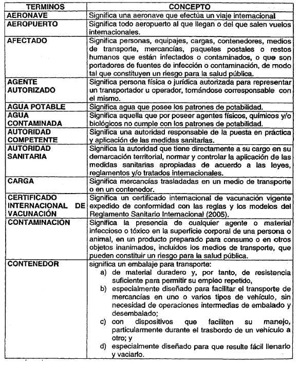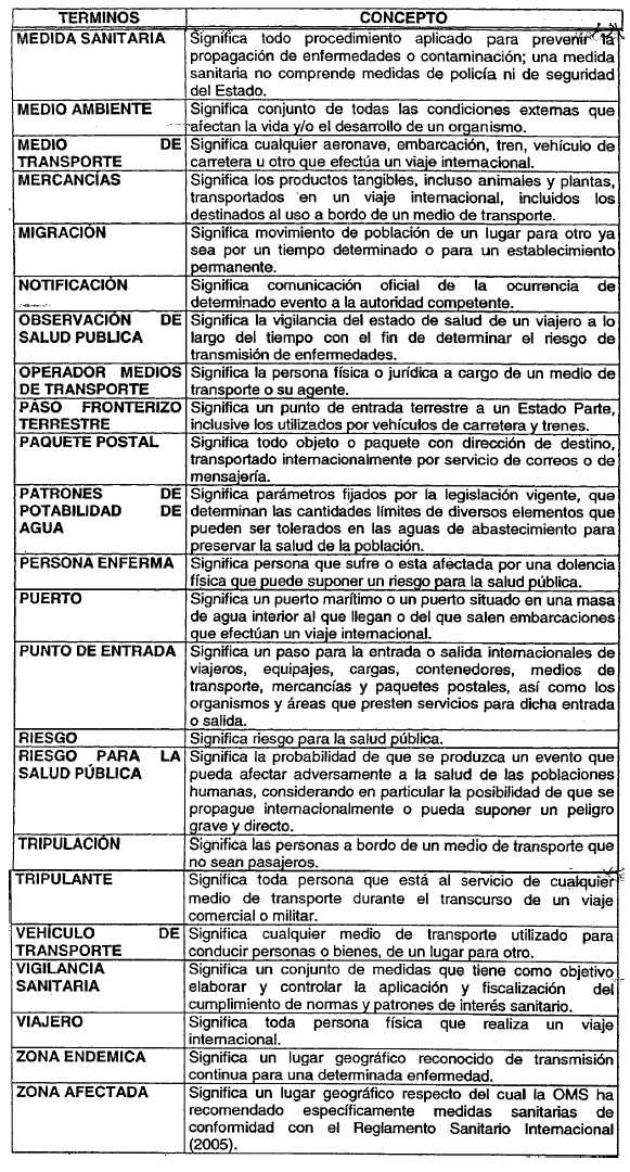 Bs. As., 6/12/2006 VISTO Expediente Nº 1-2002-8.787/06-0 del registro del ex-MINISTERIO DE SALUD Y AMBIENTE, el Tratado de Asunción del 26 de marzo de 1991, aprobado por la Ley Nº 23.981 y el Protocolo de Ouro Preto del 17 de diciembre de 1994, aprobado por la Ley Nº 24.560 y la Resolución Nº 91/93 del Grupo Mercado Común, y CONSIDERANDO: Que el proceso de integración del Mercosur es de la mayor importancia estratégica para la REPUBLICA ARGENTINA. Que, conforme a los artículos 2º, 9º, 15, 20, 38, 40 y 42 del Protocolo de Ouro Preto, las normas Mercosur aprobadas por el Consejo del Mercado Común, el Grupo Mercado Común y la Comisión de Comercio del Mercosur, son obligatorias y deben ser incorporadas, cuando ello sea necesario, al ordenamiento jurídico nacional de los Estados Partes mediante los procedimientos previstos en su legislación. Que conforme a los artículos 3º, 14 y 15 de la Decisión 20/02 del Consejo del Mercado Común, las normas Mercosur que no requieran ser incorporadas por vía aprobación legislativa podrán ser incorporadas por vía administrativa por medio de actos del Poder Ejecutivo. Que el artículo 7º de la citada Decisión establece que las normas Mercosur deberán ser incorporadas a los ordenamientos jurídicos de los Estados Partes en su texto integral. Que la DIRECCION GENERAL DE ASUNTOS JURIDICOS, ha tomado la intervención que le compete. Que el presente se dicta en ejercicio de las atribuciones conferidas en función de lo dispuesto en el artículo 23 ter inciso 54) de la Ley de Ministerios, Texto Ordenado Decreto Nº 438/92. Por ello, EL MINISTRO DE SALUD RESUELVE: Artículo 1º — Incorpórase al ordenamiento jurídico nacional la Resolución GRUPO MERCADO COMUN Nº 34/05 "GLOSARIO DE CONTROL SANITARIO DE PUERTOS, AEROPUERTOS, TERMINALES Y PUNTOS DE FRONTERA (DEROGACION DE LA RESOLUCION GMC Nº 27/00)" que se adjunta como anexo y forma parte integrante de la presente Resolución. Art. 2º — En los términos del Protocolo de Ouro Preto, la norma que se incorpora por la presente Resolución, entrará en vigor simultáneamente en los Estados Partes, TREINTA (30) días después de la fecha de comunicación efectuada por la Secretaría del Mercosur informando que todos los Estados han incorporado la norma a sus respectivos ordenamientos jurídicos internos. La entrada en vigor simultánea de la Resolución GRUPO MERCADO COMUN Nº 34/05 "GLOSARIO DE CONTROL SANITARIO DE PUERTOS, AEROPUERTOS, TERMINALES Y PUNTOS DE FRONTERA (DEROGACION DE LA RESOLUCION GMC Nº 27/00)" será comunicada a través de UN (1) aviso en el Boletín Oficial de la Nación (cfr. Artículo 40 inciso iii del Protocolo de Ouro Preto). Art. 3º — Comuníquese, publíquese, dése a la Dirección Nacional del Registro Oficial y archívese. — Ginés M. González García. MERCOSUR/GMC/RES. Nº 34/05 GLOSARIO DE CONTROL SANITARIO DE PUERTOS, AEROPUERTOS, TERMINALES Y PUNTOS DE FRONTERA (DEROGACION DE LA RESOLUCION GMC Nº 27/00) VISTO: El Tratado de Asunción, el Protocolo de Ouro Preto y la Resolución Nº 22/05 del Grupo Mercado Común. CONSIDERANDO: Que la Resolución de la 58a Asamblea Mundial de la Salud, WHA 58.3 del 23 de mayo de 2005, adopta el nuevo Reglamento Sanitario Internacional (2005). Que es conveniente compatibilizar los términos que integran el glosario del Reglamento Sanitario Internacional (2005) con los de la Subcomisión de Puertos, Aeropuertos, Terminales y Puntos de Frontera del SGT Nº 11 "Salud". EL GRUPO MERCADO COMUN RESUELVE: Art. 1 — Aprobar el "Glosario de Control Sanitario de Puertos, Aeropuertos, Terminales y Puntos de Frontera", que consta como Anexo y forma parte de la presente Resolución. Art. 2 — Los Organismos Nacionales competentes para la implementación de la presente Resolución son: Argentina: Ministerio de Salud y Ambiente Brasil: Ministério da Saúde Paraguay: Ministerio de Salud Pública y Bienestar Social Uruguay: Ministerio de Salud Pública Art. 3 — Derógase la Resolución GMC Nº 27/00. Art. 4 — Los Estados Partes deberán incorporar la presente Resolución a sus ordenamientos jurídicos nacionales antes del 19/IV/2006. LX GMC - Montevideo, 19/X/05 ANEXO GLOSARIO DE CONTROL SANITARIO DE PUERTOS, AEROPUERTOS, TERMINALES Y PUNTOS DE FRONTERA