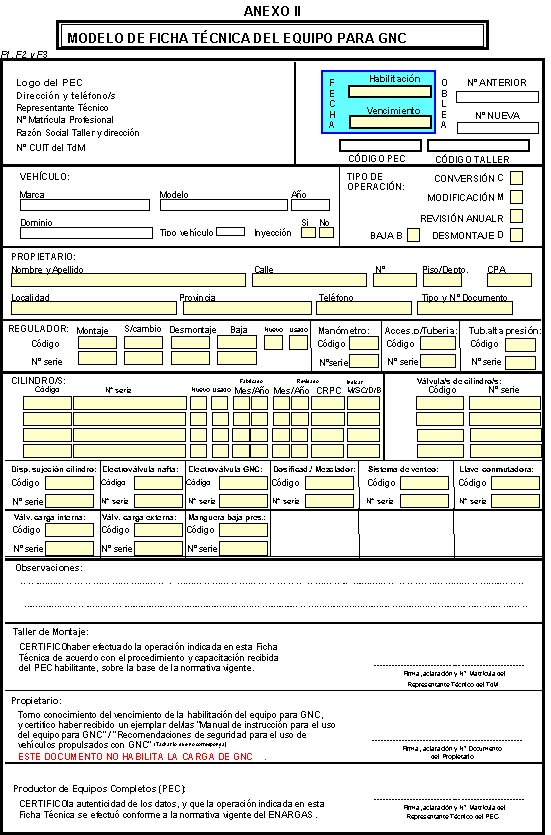 ANEXO II : MODELO DE FICHA TÉCNICA DEL EQUIPO PARA GNC E INSTRUCCIONES PARA COMPLETARLA