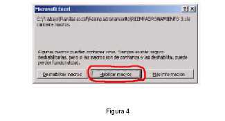 COMENZAR A USAR EL PROGRAMA Una vez instalado el programa, para comenzar a utilizarlo debe ejecutarlo haciendo doble clic sobre el archivo Excel ubicado en el directorio antes mencionado (C:\SE\GLP). El entrar en el programa, Excel le preguntara si desea utilizar macros, a lo que deberá responder que si (ver figura 4).